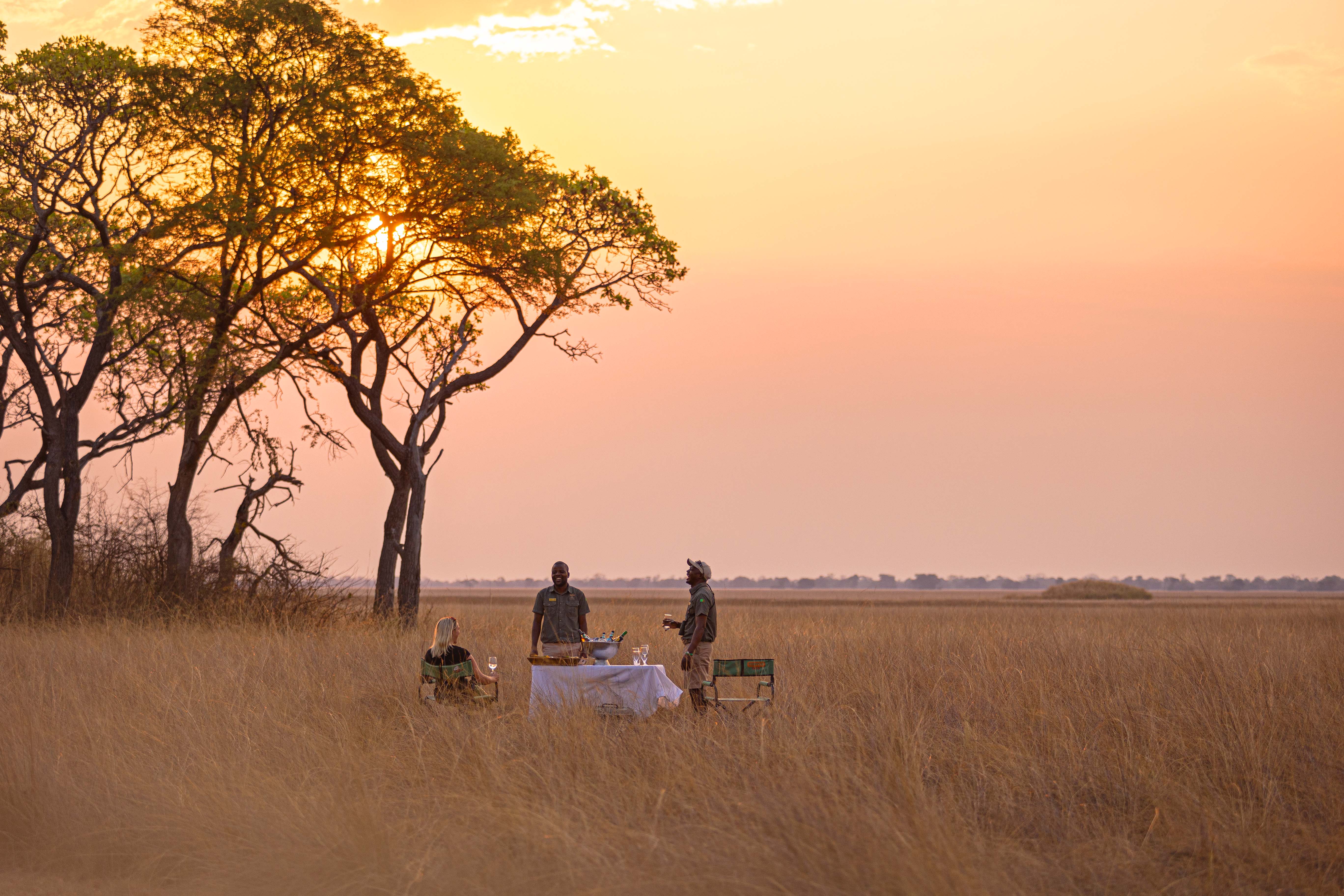Planen Sie mindestens eine Pirschfahrt im ersten Licht, um den fotogenen Busanga-Nebel zu sehen, und bitten Sie eine private Terrassen-Dinner eine Nacht an.