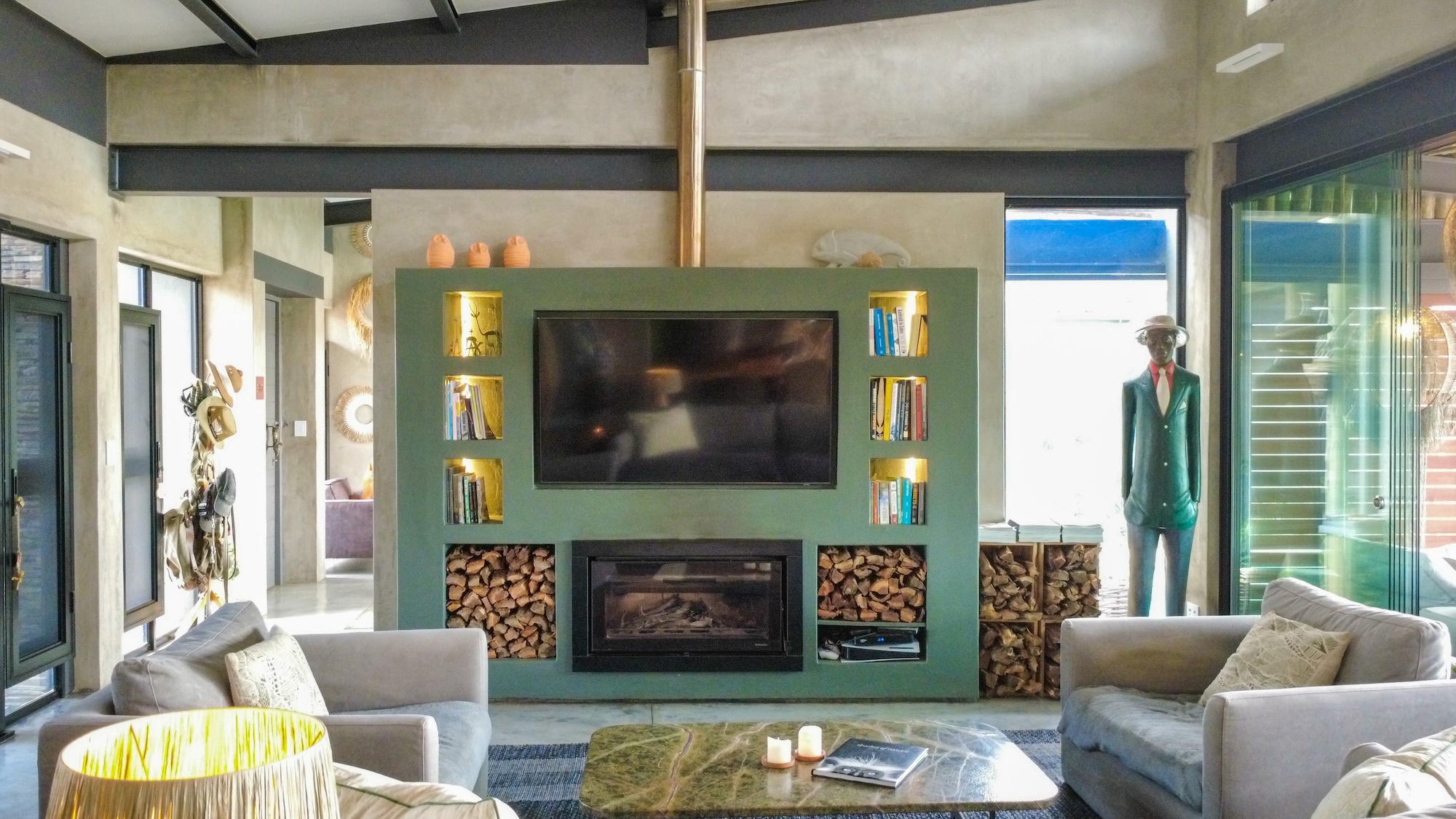 Alle 3 Zimmer sind Teil des gleichen intimen Hauses. Erwartet man En-Suite Schlafzimmer mit Klimaanlage, Innen- und Außenduschen, Moskito-Jalousien und einen warmen, unterschätzten Stil, der sich mehr wie ein schönes Busch-Haus als eine konventionelle Lodge anfühlt.