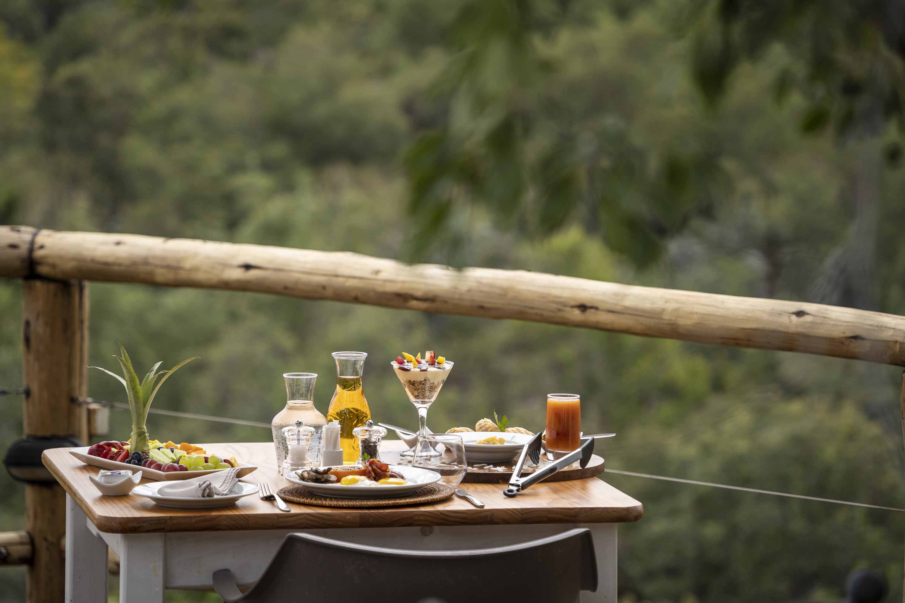 Ein romantisches Baumkronen-Versteck versteckt in einem dicht bewaldeten Tal über dem Taaibos River in der Welgevonden Reserve, fünf glasfrontige Strohdachsuiten blicken über bewaldete Hügel und Täler, Morgen- und Nachmittags-Pirschfahrten arbeiten die Ebenen und Koppies der Reserve, Abende gleiten in laternen-beleuchtete Abendessen auf dem großen Deck mit Buschgeräuschen ringsum, "Tshwene" nickt zum Chacma-Pavian, ein spielerisches bisschen Trivia für Sundowner.