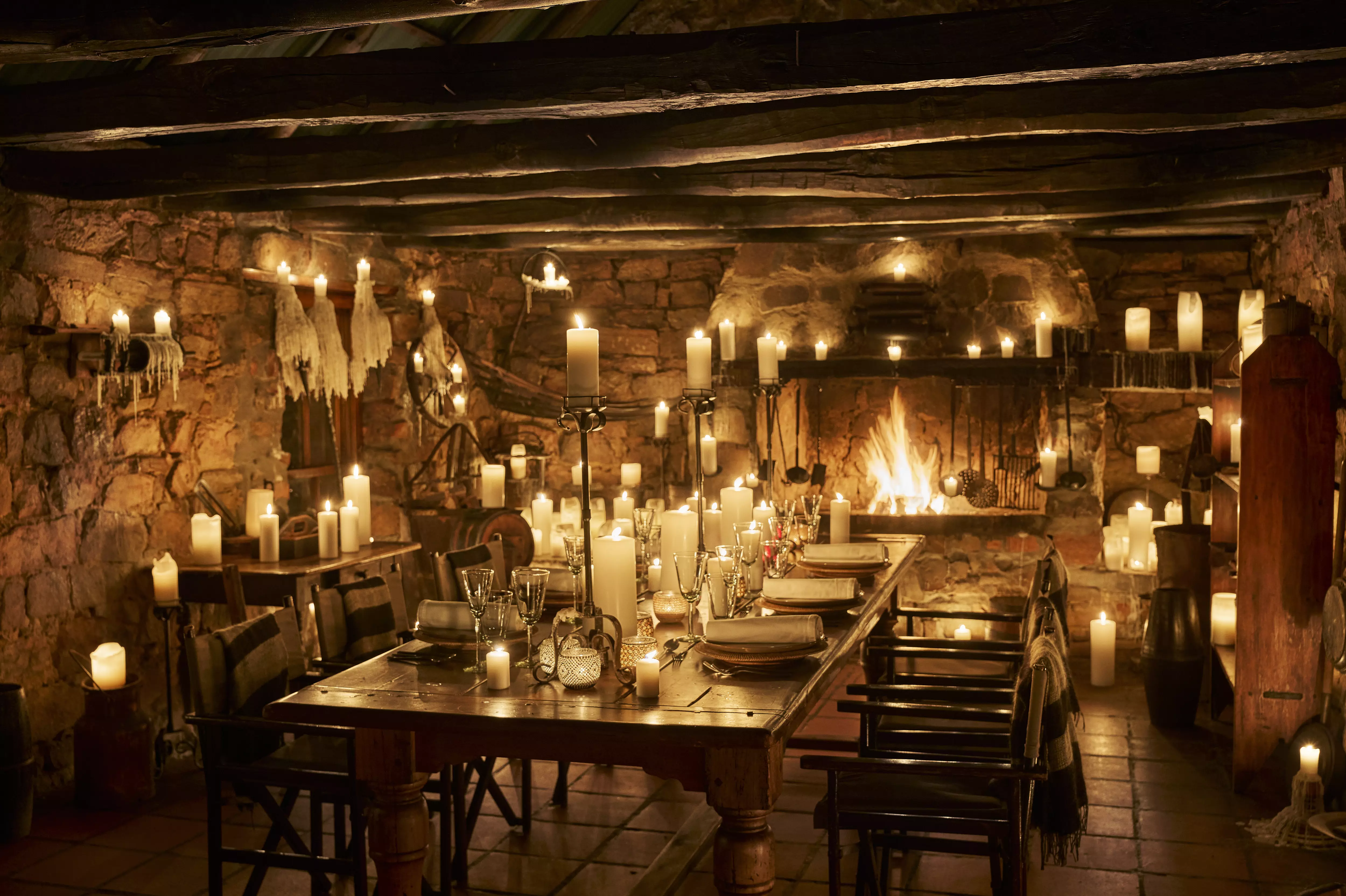 Dining is refined yet relaxed, with seasonal menus inspired by local ingredients. Meals are served in a variety of settings, from elegant indoor spaces to open-air dining under the stars, often paired with wines from the region.