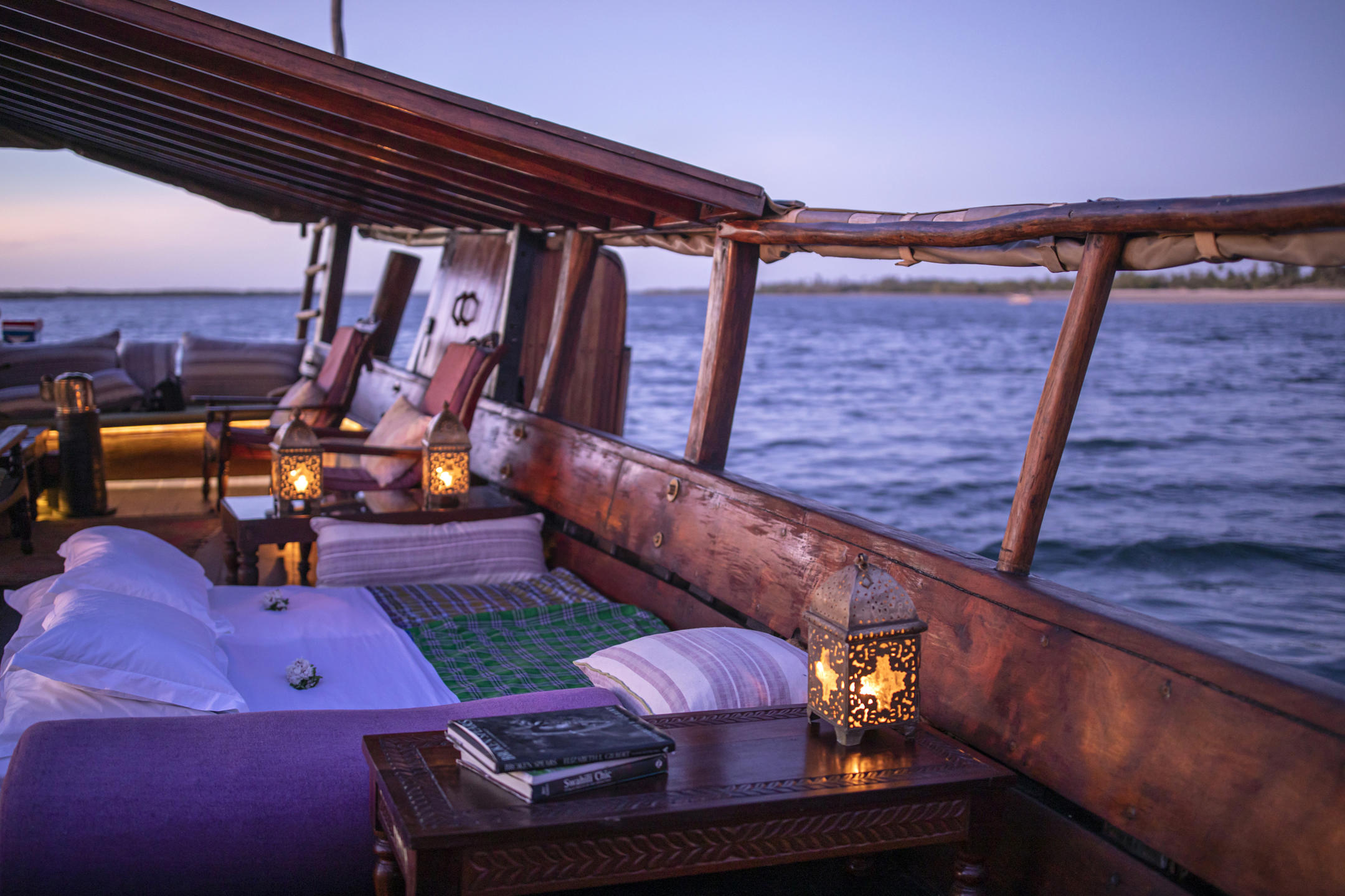 The experience is entirely on deck rather than in traditional cabins. Expect beautifully prepared bedrolls with crisp white linen, set up under the open sky, creating one of the most memorable “rooms” in East Africa.
